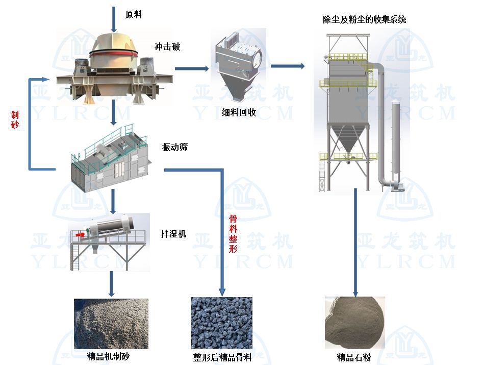 干式整形制砂設(shè)備是亞龍筑機(jī)根據(jù)市場需求,在充分吸收國外先進(jìn)技術(shù)并兼顧國內(nèi)實(shí)際情況的基礎(chǔ)上,推出的一款以花崗巖、石灰?guī)r等礦山巖石以及尾礦碎石等為原材料,兼具“破碎、整形、制砂、分級(jí)”多種功能為一體的石料深加工設(shè)備。該系列設(shè)備具有綠色環(huán)保、自動(dòng)化程度高、操作方便、工藝先進(jìn)等特點(diǎn),生產(chǎn)出的成品料粒型圓潤、級(jí)配連續(xù)穩(wěn)定,符合國家標(biāo)準(zhǔn)要求,是骨料生產(chǎn)廠家的理想設(shè)備。